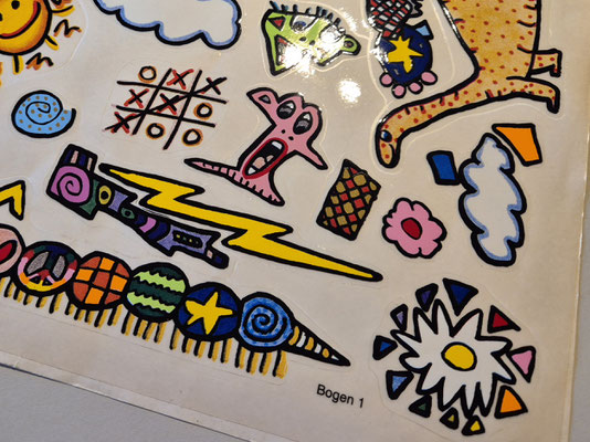 Der Aufklebersatz besteht aus zwei Bögen und hat dem Alter entsprechend Lagerungsspuren, befindet sich aber noch in einem guten bis sehr gutem Zustand (Siehe Bilder).