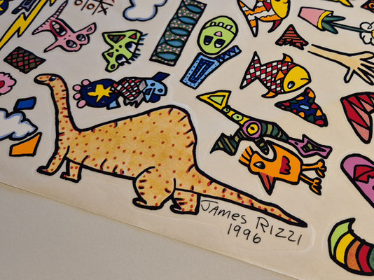 1995 wurde seitens des Spielwarenherstellers BIG die "Bobby-Car Art-Collection“ ins Leben gerufen, wofür neben James Rizzi auch Otmar Alt und Kitty Kahane Aufklebersätze für das Rutschauto gestalteten. Auf Rizzis Version, die 1996 fertig gestellt wurde und zusammen mit einem weißen Bobby-Car-Classic in den Handel kam, tummeln sich eine Vielzahl seiner "klassischen“ Motive, darunter die strahlende Sonne, ein grinsender Dinosaurier und – wie auch von Rizzis Darstellungen von Hochhäusern bekannt – ein lachendes Gesicht auf der Vorderseite, das dem kleinen Gefährt einen fröhlichen Charakter verleiht.