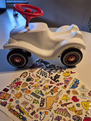 (Das bereits beklebte Bobby-Car ist nicht Bestandteil dieses Angebotes.)